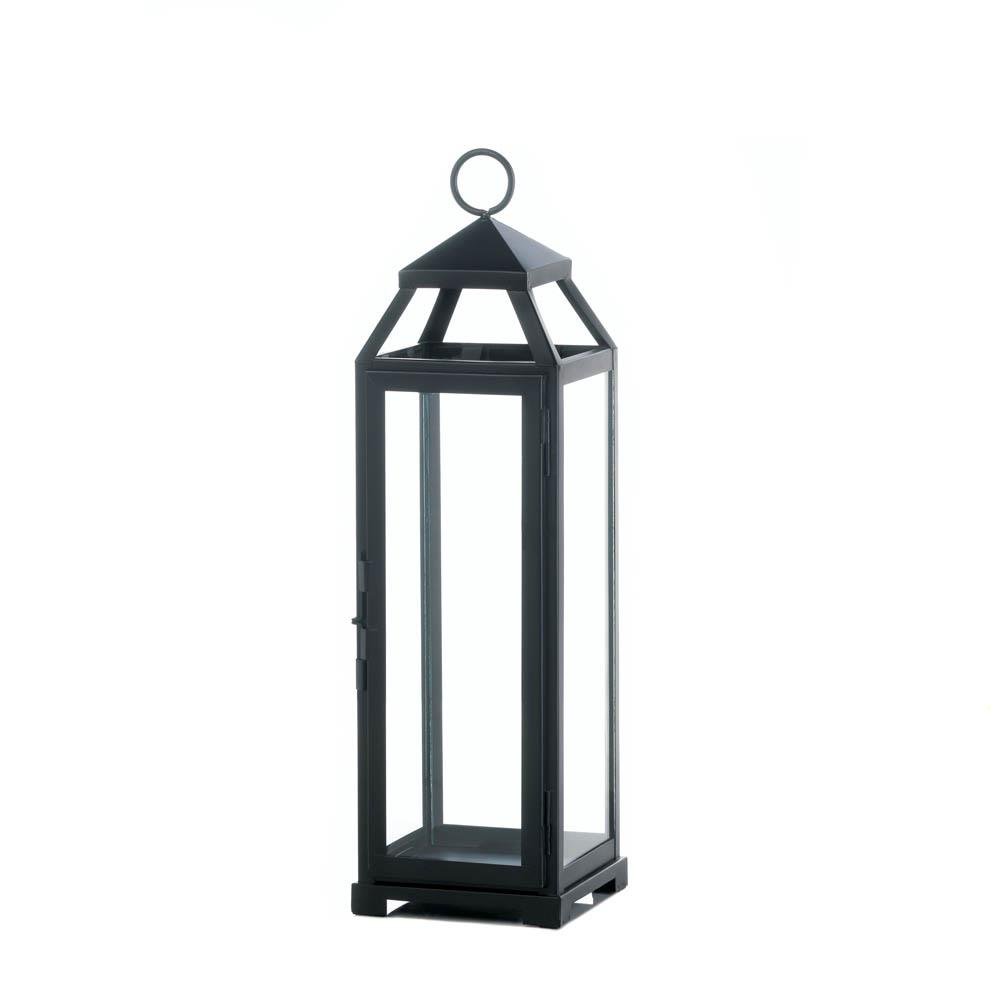 • This stunning iron and glass candle lantern will make an impact on the overall style of your room. It stands over 15 inches high and it’s hinged door lets you easily fill it with the candle or the decorative accents of your choice.